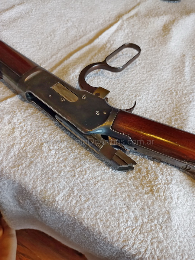COMENTARIOS: - Inmejorable estado. El arma es originalmente calibre 44 WCF, posteriormente modificada a Cal. 11.25 mm. Se entrega una vez ingresado el tramite a ANMAC.